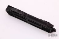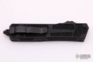 The Microtech Scarab II is a high quality tactical out-the-front knife, based on the original Microtech Ultratech design. Built to withstand the extreme, the Scarab II excels in high-intensity covert operations. The Scarab II is designed for a broad spectrum of utility and close quarter combat applications for use by qualified law enforcement, military, and government agency operatives. The Scarab II is fabricated to the highest possible standards to assure reliability and safety with its use. Featuring a one-handed, open and close, dual-action out-the-front (OTF) design, and double edge blade. The Scarab is produced with a large easy-to-grip handle that contains non-slip grip inlays on both sides. Comes with original box and papers. Excellent condition.
