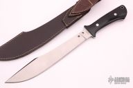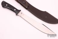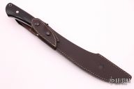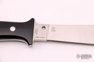 The Spyderco Darn Dao knife is based on a rare custom design by Bob Lum, and was inspired by the "single knife" broadsword of classic Chinese martial arts. This formidable fixed blade is equipped with a satin finished, full-flat ground CPM-154 stainless steel blade with an unsharpened swedge to offer a fine point. Its full tapered tang is fitted with contoured black G-10 scales that flare at the bottom for a positive grip. The Darn Dao is paired with a handcrafted leather sheath with a thumb-break-style snap to provide secure retention and a quick draw. The Darn Dao is a Spyderco "Flash Batch", which is similar to a Sprint Run, but features a brand new design not previously produced. Each knife in this Flash Batch is individually numbered. This is a one-time-only production run. This knife is #0083 of 1200. Comes with nylon zippered case. New condition.