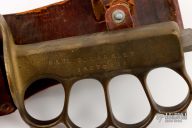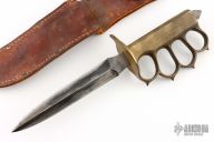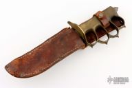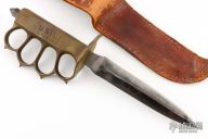 Extremely hard to find. This is a WWI trench knife made by L.F & C. Cast Bronze handle with U.S. 1918 stamped. Blade in good shape for its age. Comes with a brown leather sheath, not original, but fits nicely. Has some patina and scratches, has been resharpened, otherwise good condition for its age. The handle is stamped "PAUL E. LANGLEY 15077211"