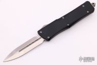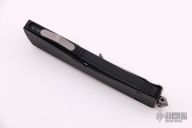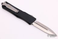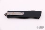 This Troodon by Microtech features a stonewashed double-edged blade. The handle has a black aluminum frame with blasted hardware and tip down clip. Dated 05/06 and s/n 00101. Excellent Condition.