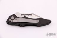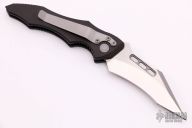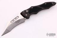 This Vector side opening automatic by Microtech Knives features a satin finished tanto recurve blade. The handle has a black aluminum frame with a tip down bead blasted stainless steel clip. Dated 04/2002 and #1221. Excellent condition.