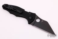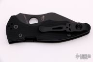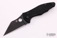 This Yojimbo 2 by Spyderco features a black finished wharncliffe blade with thumbhole. The handle has a black G-10 frame with stainless steel liners, lock is on the spine of handle. 4-way reversible stainless steel clip. Nice detent, lockup and blade seating. Comes with original box and papers. Excellent condition.