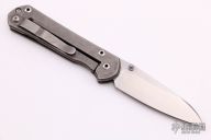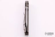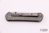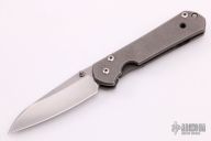 This Small Sebenza 21 Insingo by Chris Reeve Knives features bead blasted titanium frame and pocket clip, Tumble finish blade with dual silver titanium thumbstuds, lanyard pin at the butt. Nice function, strong lock up, nice detent and blade seating is centered. Has been used and carried, has scuffs and scratches, otherwise good condition. Comes with original box and COA dated September 14, 2011