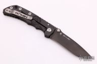 This framelock folder by Spartan Blades features a black PVD finished drop point blade with dual thumbstuds and a notched thumbrest. The handle has black PVD finished titanium frame with tip up titanium clip. Handle is laser engraved. Has nice detent, lockup, and blade seating. Comes with original box. Excellent condition. #005