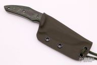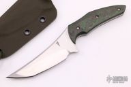 This 3" Instigator Fixed Blade by Jeff VanderMuelen features a hand rub satin finished blade with .129" blade stock and 1.106" blade depth, full tang construction. The handle has "Jungle Wear" fat carbon scales. Comes with a kydex neck sheath and COA. Excellent condition.