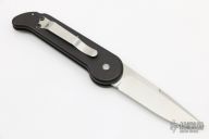 This ATKO 11 by Paragon features a stonewashed blade with false top edge. The handle has a black aluminum frame with rubber inserts and a stainless steel clip, has safety. Has some light scratches, otherwise good condition.