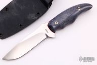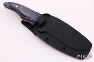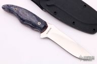 This Venor Drop Point by MercWorx features a hand rub satin finished drop point blade with notched thumbrest, .145" blade stock and 1.052" blade depth, full tang construction. The handle has dyed bone scales over red liners and mosaic pins. Comes with kydex sheath with belt loop. Excellent condition.
