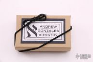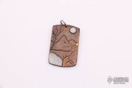 This handmade pure copper pendant features a tranquil mountain lake scene with a small 24k gold lay and some silver solder accents. Includes a stainless steel chain and original box. New from maker.
