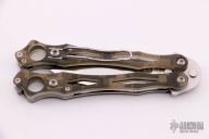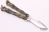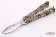 This Smallfly Balisong by Spyderco has a satin finished spear point blade with false top edge. The handle is comprised of digital camo G10 scales over stainless steel liners. The paper clip style pocket clip is 4 way adjustable. Includes original box and papers. Excellent condition.