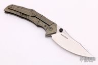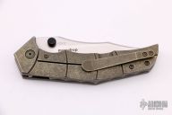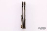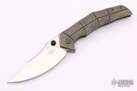 This Thresher by Massdrop is a Gavko design. It features a satin finished blade with dual thumbstuds. The handle has an anodized and tumbled titanium frame with matching backspacer and tip up clip. Comes with original box and zippered case. Excellent condition.