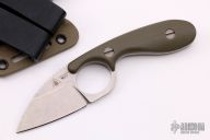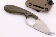 This Necker II by Survive Knives features a stonewashed drop point blade with notched thumbrest, .156" blade stock and 1.419" blade depth, full tang construction with green G-10 scales. Comes with a kydex sheath with belt clip. Excellent condition. Comes with ball chain and some tread lock.