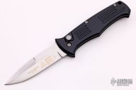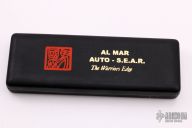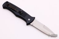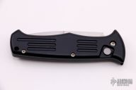 This Custom Auto SEAR side opening auto by Al Mar Knives features a hand rub satin finished blade with false top edge. The handle is T6 black anodized aluminum with a black stainless steel tip up clip. The action is strong and lock-up is solid. Comes with original box. Excellent condition.