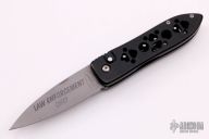 This "Law Enforcement Only" auto by AutoTech features a bead blasted blade with false top edge. The handle has a black aluminum frame with a tip down black stainless steel clip. Comes with original box, tools and extra spring. Excellent condition.