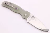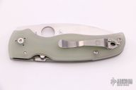 This Shaman Pin by Spyderco features a satin finished spear point blade with notched thumb and finger rests, thumbhole. The handle has jade G-10 scales, inlaid stainless steel liners and a satin finished stainless steel backspacer, 4-way reversible stainless steel clip, lanyard hole at the butt. Comes with original box and papers. Excellent condition.