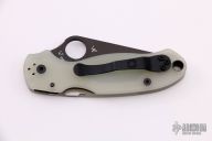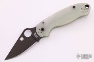 This C223GPOR Para 3 by Spyderco features a black finished clip point blade with thumb hole and notched thumbrest. The handle is comprised of an jade G-10 frame over nested steel liner and stand-offs. The steel pocket clip is 4 way adjustable. Includes original box and paperwork. Excellent condition.