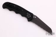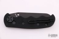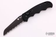 This Spyderco Autonomy features a black fully serrated blade, H-1 blade steel. The handle has black G-10 scales, black stainless steel liners, and a tip up reversible clip. Excellent condition. This knife has a small notch ground into the spine indicating that it was a factory second purchased at the Spyderco Factory Outlet Sale.