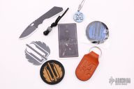 Strider Swag Pack. 3 stickers. 2 keychains. 2 patches. 1 bead.