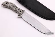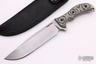 This Mega Ratweiler by Swamp Rat Knives features a competition finished blade and black/tan G-10 scales. .352" blade thickness and 1.812" blade depth. Full tang construction. Comes with a black leather sheath. Excellent condition.
