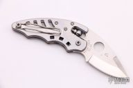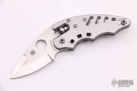 A pollywog represents metamorphosis in the animal kingdom, adapting and changing its form to survive in its environment. The same principle applies here. The Spyderco Poliwog CLIPIT thrives in a small-knife-friendly environment while keeping the features necessary to excel in a harsh, heavy cutting and performance setting. Its distinctive opened-ended Ball Bearing Lock' exposes the knife's inner workings for easy cleaning and rates as one of Spyderco's highest strength locking mechanisms. Pulling back on the ball unlocks the blade ambidextrously from either side of the knife. The hand settles on the curved handle positioning the index finger into a choil that optimizes control and generates less fatigue and pressure on the hand during cutting. Made from VG-10, the blade has a hollow-ground edge with a weight reducing swedge-grind extending mid-spine to the tip. Its ambidextrous wire-tension pocket clip sets the Poliwog tip-up in the pocket. Has some light scratches, otherwise excellent condition. #168. Comes with original box.