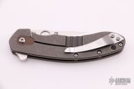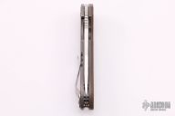 This Southard framelock flipper by Spyderco Knives features a tumbled blade with a notched thumb-rest, thumb-hole, and flipper. The handle has a textured earth G-10 scale with a bead blasted titanium liner and titanium scale with brown G-10 around the pivot screw and a stainless steel clip, tip up carry. Includes the original box and papers. Excellent condition.