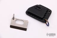 This Micro Tack by Flavio Pellegrino features a chisel ground blade and is made from anodized titanium, has a notched spine, .130" blade stock and .975" blade depth. Comes with original bag and card dated 9/19. Comes with kydex sheath. New from maker.