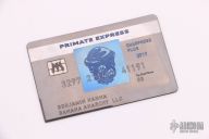 Primate Express “Sharpness Plus” Titanium Card Blade by Mummert Knives. Has Fiber Laser Color and Deep Etch. Tungsten carbide edge, RC 72. Light scratches are visible on the knife otherwise the knife is in excellent condition.