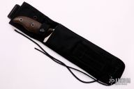 This Equatorian from Mercworx features a satin finish drop point, recurved blade with sharpened top edge and notched thumbramp, .245" blade stock and 2.400" blade depth, full tang construction. The handle is comprised of black canvas micarta scales over full tang construction with hollow pins. Includes tactical nylon sheath. Excellent condition.