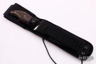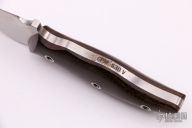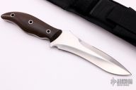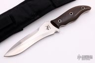 This Vorax from Mercworx features a satin finish drop point, recurved blade with sharpened top edge and notched thumb ramp, .235" blade stock and 1.721" blade depth. The handle is comprised of brown canvas micarta scales over full tang construction with hollow pins. Includes tactical nylon sheath. Excellent condition.