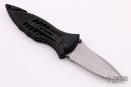 This CQD Mark 1 Folder from Masters of Defense has a spear point stainless steel blade with dual thumb studs. Handle is black aluminum with non-slip inserts, reversible titanium tip down clip, seat belt cutter, lanyard hole and glass breaker. Excellent condition.