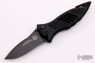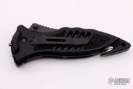 This CQD Mark 1 Auto from Masters of Defense has a spear point black blade with dual thumb studs. Handle is black aluminum with non-slip inserts, reversible titanium tip down clip, seat belt cutter, lanyard hole and glass breaker. Excellent condition. Comes with MOD box, sheath and papers.