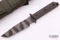 This Strider WB Fixed Blade has a tiger striped tanto blade with full tang construction. .250" Blade Stock.  1.26" Blade Depth.   Handle features G10 Gunner Grip Scales.  Excellent condition. Comes with a nylon sheath.  Light scuffs are visible on the blade otherwise the knife is in excellent condition.