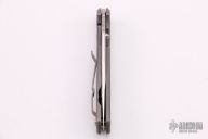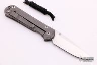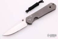 This Small Sebenza 21 by Chris Reeve features a tumbled blade with single anodized thumbstud. The frame is bead blasted titanium with matching tip up clip. Nice detent, lockup and blade seating. Has some scuffs on the frame, otherwise good condition. Comes with box and papers dated August 6, 2014.