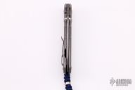This Large Inkosi from Chris Reeve features a Bjorkmans Twist Damasteel blade with dual thumbstuds and notched thumbrest. The handle has a bead blasted titanium frame and tip up clip. Has some scuffs on the frame, otherwise good condition. Nice detent, lockup and blade seating. Comes with original box and papers dated May 21, 2018.