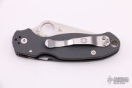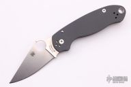 This Paramilitary Linerlock Folder from Spyderco has a tumble finished clip point blade with thumb hole and notched thumbrest. Handle is grey G-10 with stainless steel liners and stainless steel 4-way reversible clip. Has a couple spots on the blade, otherwise excellent condition.