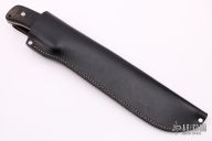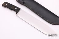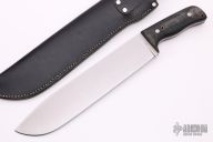 This 11.5" Big Boar Tusker 2.0 by Scott Gossman features a satin finished drop point blade with a full tang construction, .246" Blade Stock and 2.429" Blade Depth. The handle is composed of black canvas micarta scales. Includes leather sheath with belt loop. Excellent condition. Only 6 of these were made.