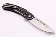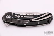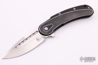 The popular field grade Bodega has been discontinued and replaced with this new offering from Begg Knives SteelCraft Series, the Bodega. This EDC friendly framelock features a hand rub satin finished blade with fullers, swedge, and notched rest for thumb placement. The titanium handle is black/silver machined to give a two-tone finish. This is a very comfortable knife that flips well and locks up with no play. Blade is centered when closed. 6Al4V titanium handle CPM-S35VN blade steel Framelock with steel lock tip insert Ceramic detent Ceramic IKBS. Excellent condition. Includes original box and papers.