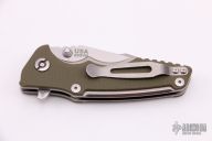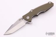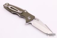This Eklipse Tri-Way by Hinderer Knives features a stonewashed harpoon spanto blade with dual thumbstuds, flipper and notched thumbrest. The handle has a tumbled titanium frame and liner with a textured green G-10 scale and tumbled titanium clip and hardware. Nice detent, lockup and blade seating. Comes with original box, card and extra hardware. Excellent condition.