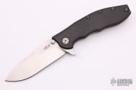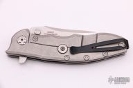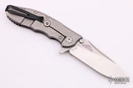 This Hinderer Designed 0562 Framelock Flipper has a drop/ spear point blade with swedge, notched thumb rest, dual thumb studs and flipper. Handle is carbon fiber and stonewashed titanium - with stainless steel lockbar insert and lockbar stabilizer. Stainless steel clip is tip up. Includes original box and papers. Excellent condition. #4792