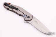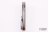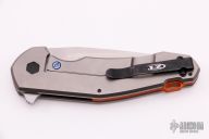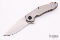 This 0220 Anso by Zero Tolerance features a stonewashed finished drop point blade with notched flipper tab. The handle has bead blasted titanium scale and frame, with a steel lockbar insert. Has an aluminum back spacer with a lanyard hole at the butt, deep pocket clip that is reversible. Nice detent, lockup and blade seating. Comes with original box and papers, S/N 1119. Excellent condition.