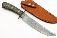 Damascus Bowie w/ Silver Wire Inlay