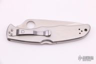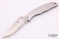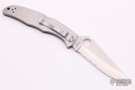 This Endura by Spyderco features a satin finished blade with thumbhole and partial serrations. The handle has a stainless steel frame with tip up or down reversible stainless steel clip. Has some scratches on the frame, otherwise the knife is in good condition. Includes the original box.