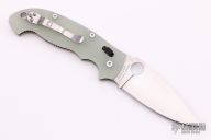 This Manix 2 has a satin finished CMP S30V stainless steel drop point blade with thumbhole and notched thumbrest. Handle is jade G-10 over stainless steel liners, 2-way reversible tip up stainless steel clip, and lanyard tube pin. Excellent condition. Comes with original box and paperwork.