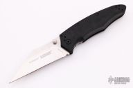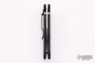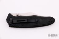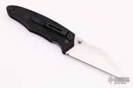 This knife features a satin finished wharncliffe blade with dual thumbstuds. The handle has black G-10 scales, stainless steel liners, and a black 4-way reversible clip. Comes with a zippered case. New condition. New old stock from another dealer.