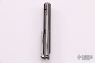 This Mnandi by Chris Reeve Knives has a satin finished blade with notched thumbrest and nail nick. The handle has a bead blasted and satin finished titanium frame with Bog Oak inlays. Titanium clip, tip up carry. Knife is in Excellent condition. Comes in original box and paperwork, birth card (January 7, 2020).