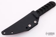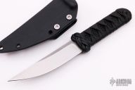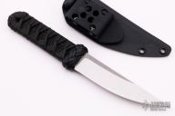This knife by Joe Watson features a satin finished blade with raw bar finished flats, .146" blade stock and 1.007" blade depth, hidden tang construction. The handle has black cord wrap over black stingray skin. Comes with a kydex sheath with clip. Excellent condition. Comes with COA dated 10-10-15