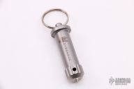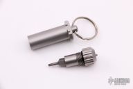 This pocket-size tool kit is a complete disassembly tool for the XM folder. It includes a built-in spanner wrench, which makes it very easy to hold both the wrench and the knife at the same time while making pivot adjustments. The head unscrews from the main body, which contains a precisely machined screwdriver blade that matches the slot on the pivot screw of the XM-18. The head will also hold any standard 1/4″ bit. In the case of the XM-18 it is a 5/64″ hex that works on the handle screws. The crossed drilled hole in the male end is there so you can use it as a “T” handle for extra torque. These are made from 17-4 PH hardened stainless steel, with a bead blast finish. Excellent condition.