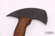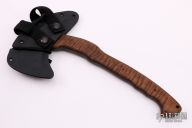 The WK RnD Axe Series is a collaborative design between Master Bladesmith Daniel Winkler and skilled Sayoc Kali martial arts trainer Rafael Kayanan. The full-size model is the most tested and highly developed axe produced by Winkler Knives, and has been proven in combat applications by a Special Operations Force Team. It is a favorite among operators and servicemen who choose their own equipment. The handle design provides a standard grip position, as well as a secondary close quarter grip that was developed to emulate the feel of a handgun grip. Axe Specifications Axe steel: 80CrV2 Black oxide no-glare finish Head length: 6" Overall length: 13 1/8" Blade thickness: 3/8" Skeletonized full tapered tang Optional Front Spike Sheath Fast draw carrier Lined Kydex® HD shockcord quick-release retention system Nylon belt straps with Mil-Spec Pull-The-Dot™ snaps Designed for multiple carry options (See our Info page for carry options) Comes with the original packaging. Excellent condition.