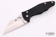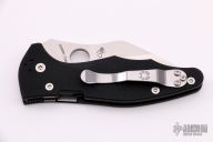 This Yojimbo 2 by Spyderco features a satin finished wharncliffe blade with thumbhole. The handle has a black G-10 frame with stainless steel liners, lock is on the spine of handle. 4-way reversible stainless steel clip. Nice detent, lockup and blade seating. Comes with original box and papers. Excellent condition.