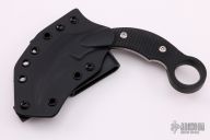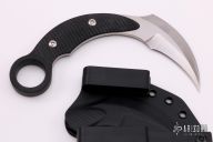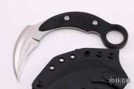 This karambit features a satin finished hawkbill blade with sharpened edge, .177" blade stock and 1.22" blade depth, full tang construction. The handle has black G-10 scales with pinky hole. Comes with a kydex sheath and original box. Excellent condition.