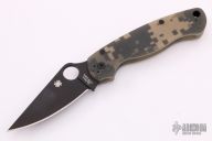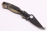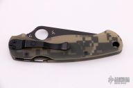 This FACTORY SECOND Paramilitary 2 Linerlock Folder has a black CPM S30V stainless steel clip point blade with thumb hole and notched thumb rest. Handle is digi camo G10 with stainless steel liners and black stainless steel 4-way reversible clip. Has a scratch on the blade finish, otherwise excellent condition.